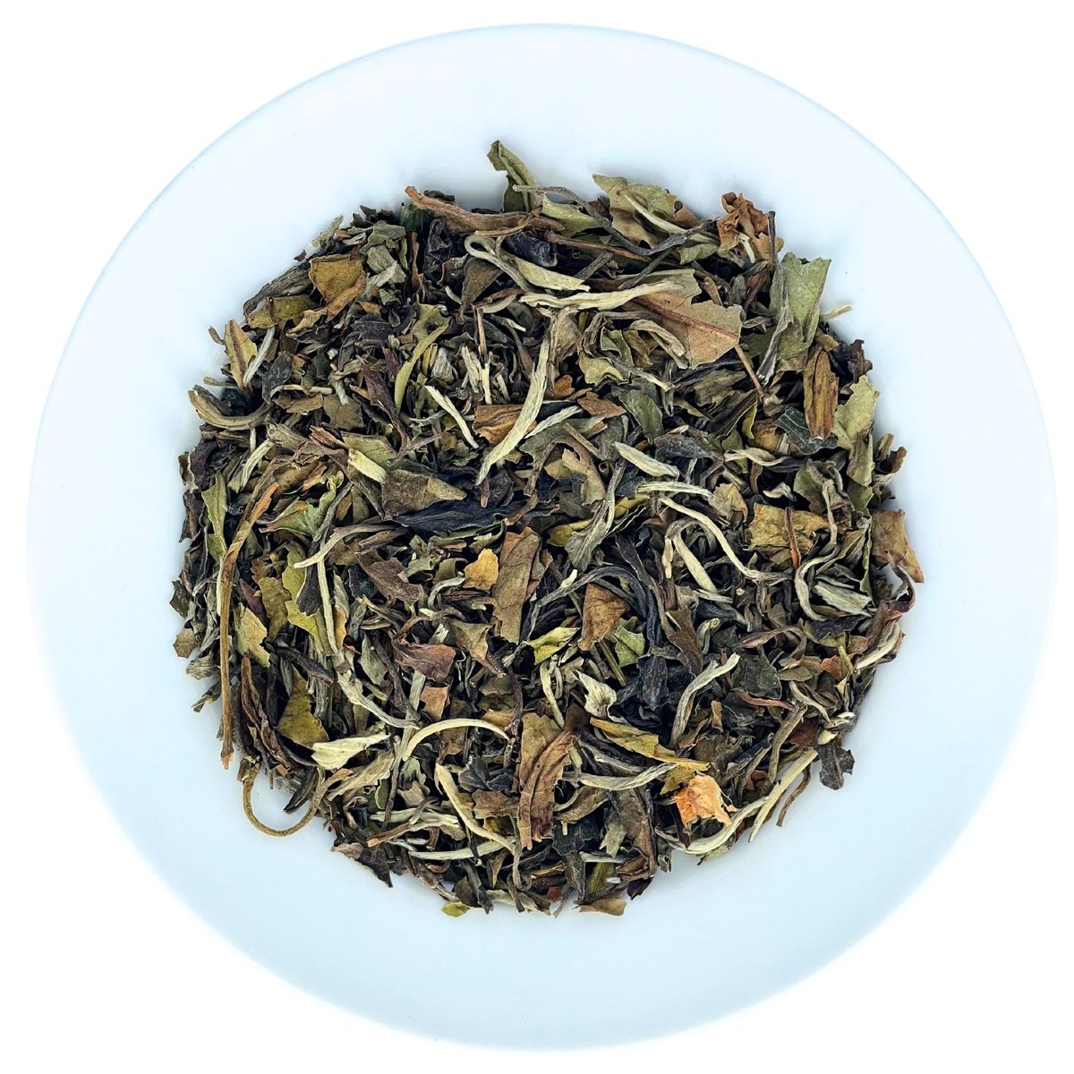 A white tea named after 'White Peony Flower' produced in China's Fujian province. The terminal bud and two leaves are plucked only in spring before being dried in the sun or closed rooms with no other processing. The infusion is a delicate light orange, and the tea has a pleasant mild flavour.