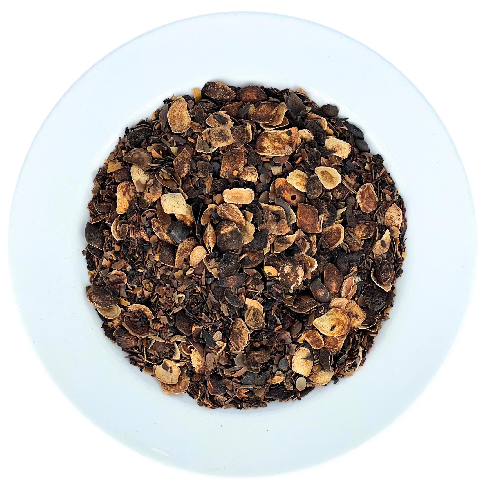 Dried mesquite roasted at high temperature reveals natural oils of coffee and vanilla flavour, this is perfect for natural sweet and citrus notes of ultimate quality rooibos! Bright flavours with great radiance of flavour and aroma.